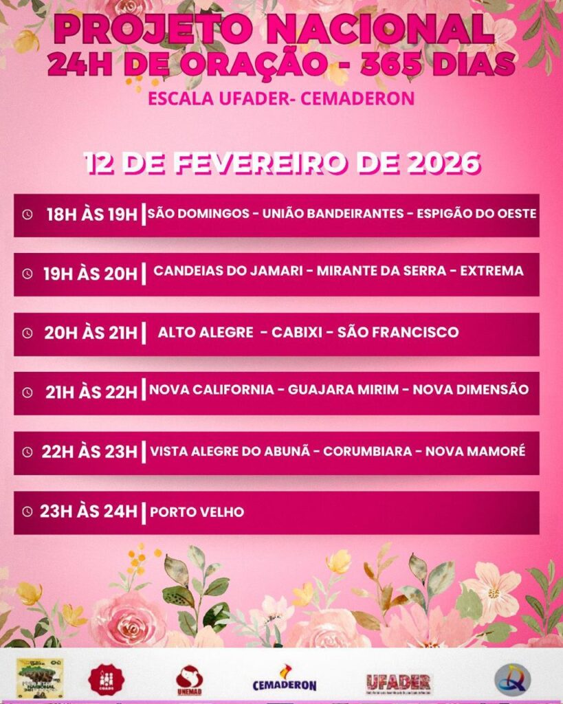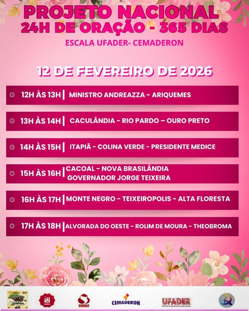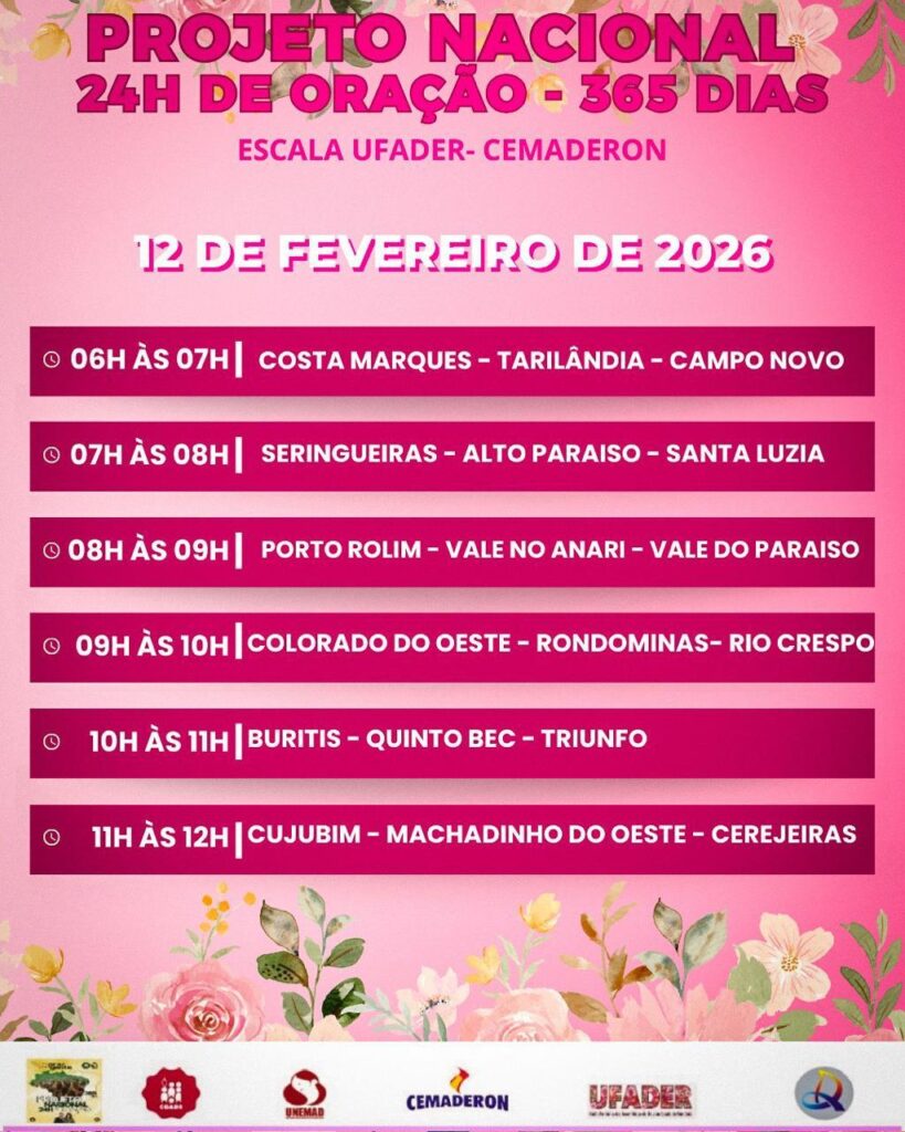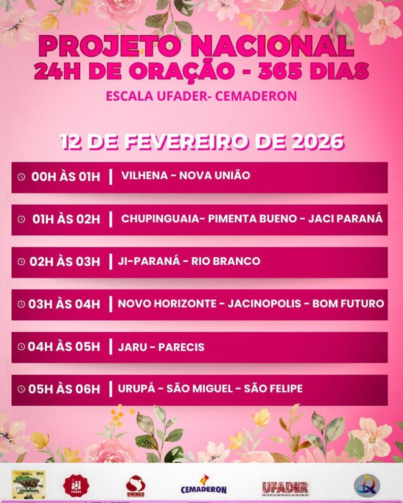 Projeto Nacional 24 hs de oração – 365 dias Publicado em por Marli Escala Ufader- Cemaderon de fevereiro de 2026